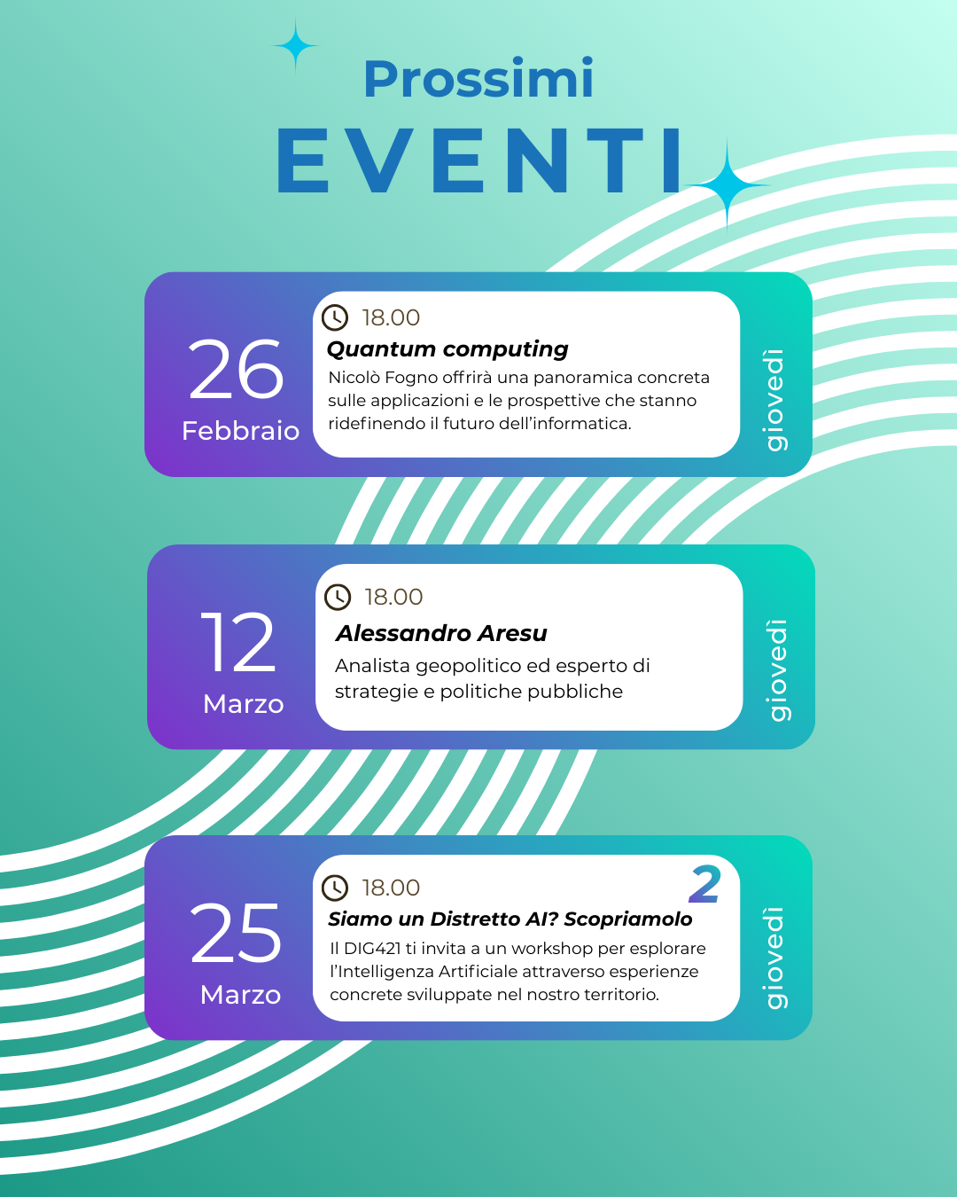I PROSSIMI EVENTI IN PROGRAMMA